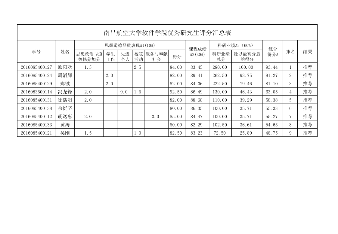 软件学院2022—2023学年研究生综合评奖及优秀研究生班级评审结果公示