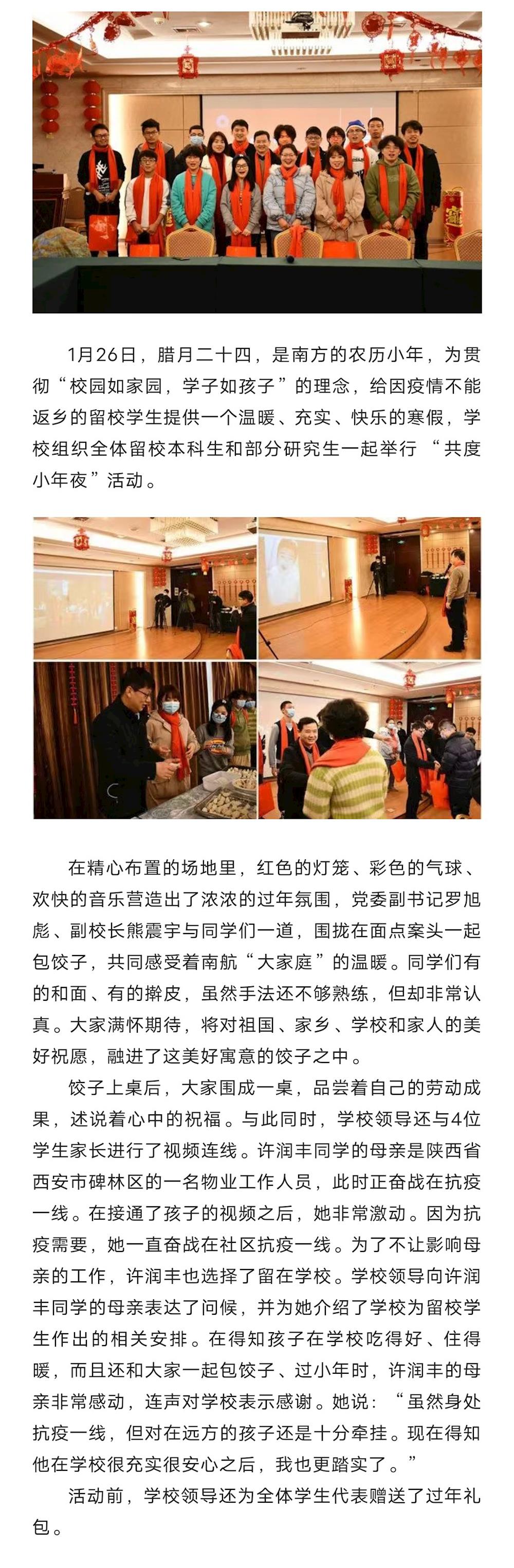 家校连线“云”相聚 学校为留校学生举办“共度小年夜”活动